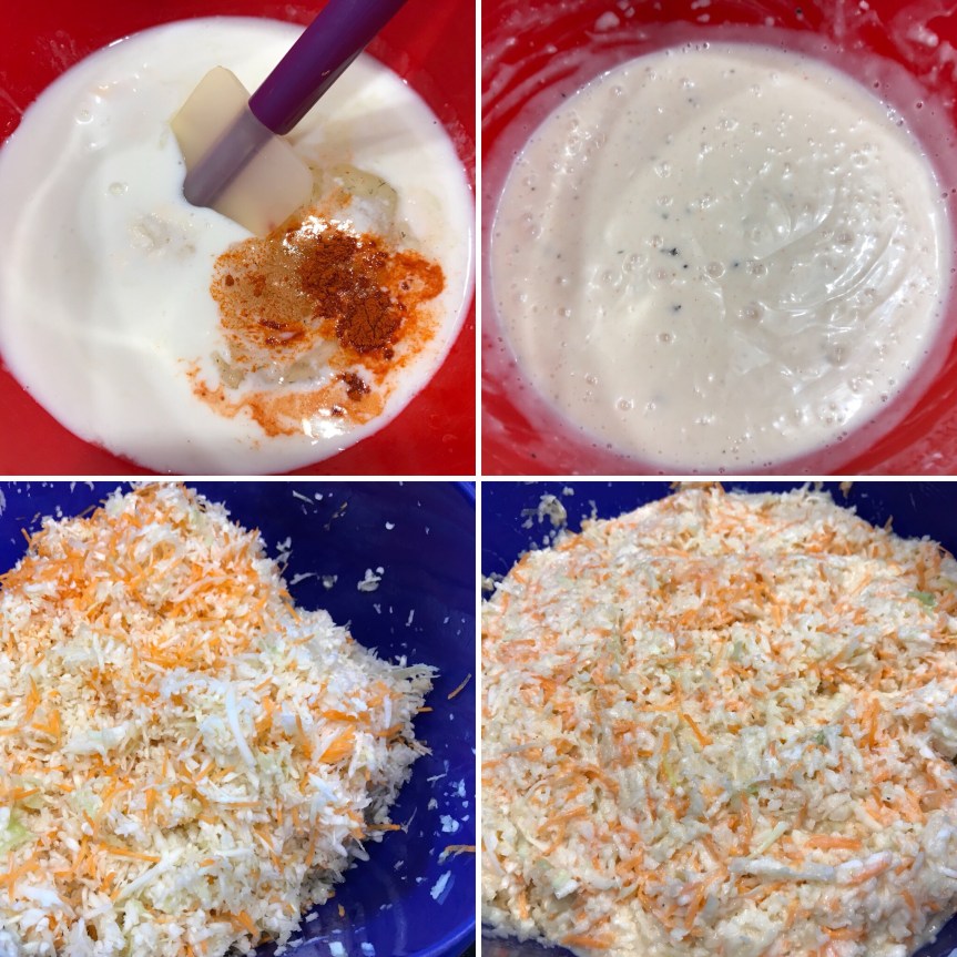 Typischer amerikanischer Coleslaw – diese Variante des Krautsalats passt bestens zu jedem amerikanischen BBQ. Das Rezept ist an eine für ihre „fried chicken“ bekannte Fastfoodkette angelehnt. Die Menge reicht für 10-12 Personen – der Rest lässt sich gut einfrieren. Eine tolle Abwechslung zu den üblichen Sommersalaten =)