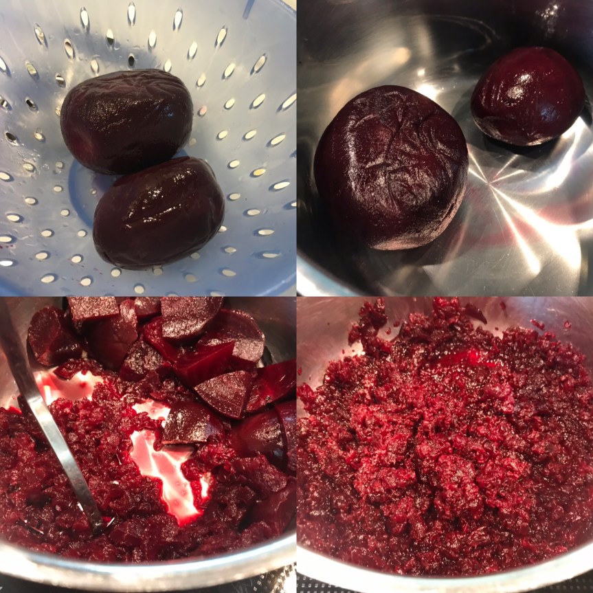 Zunächst werden die frischen rote Beete im Backofen bei 200 ° C für eine Stunde oder länger ganz weich gegart. Danach abkühlen lassen und schälen. Im Anschluss in einen Topf geben und mit einem Kartoffelstampfer o.ä. zerdrücken und, v.a. bei fertig gekochter Beete, bei mittlerer Hitze köcheln bis der Großteil der Flüssigkeit verdampft ist.