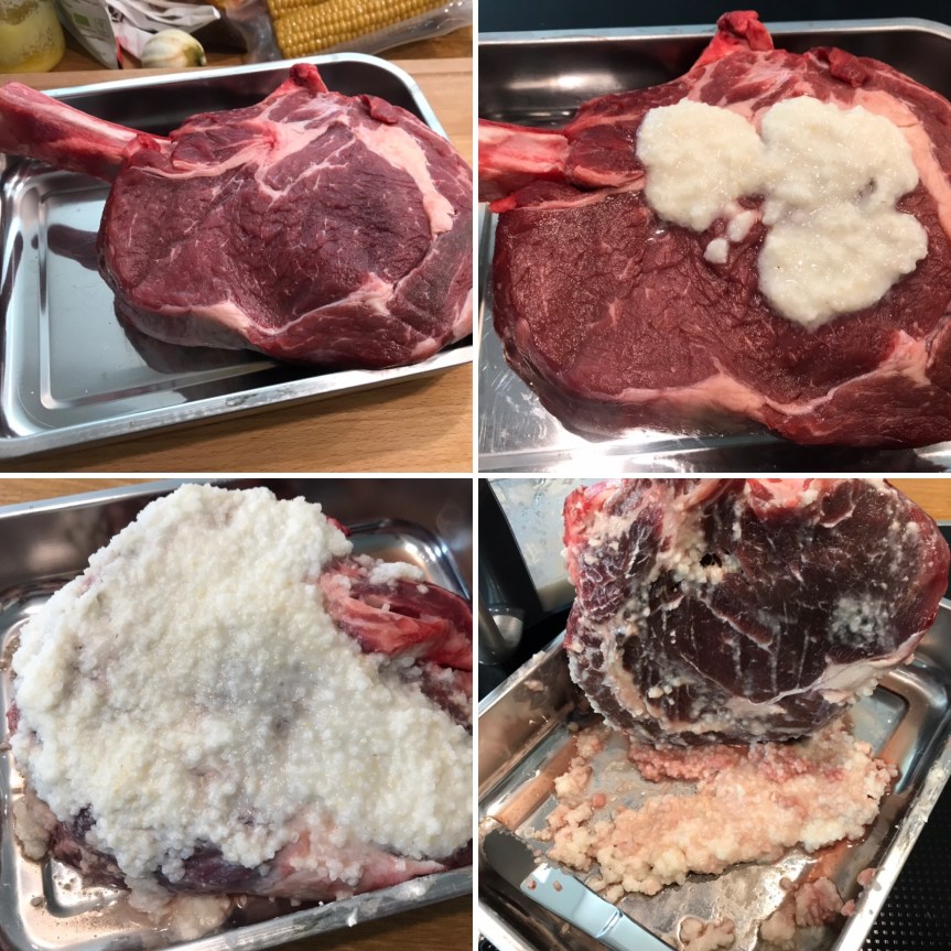 Als Cowboysteak bezeichnet man ein Ribeye-Steak am Knochen. Durch das garen am Knochen soll das Fleisch saftiger bleiben … ob das so ist, sei dahingestellt, aber ähnlich wie das Tomahawk-Steak macht es so natürlich wesentlich mehr her. Dank der Shio Koji Marinade aus fermentiertem Reis gewinnt das Steak jedenfalls deutlich an Umami und somit Geschmack.