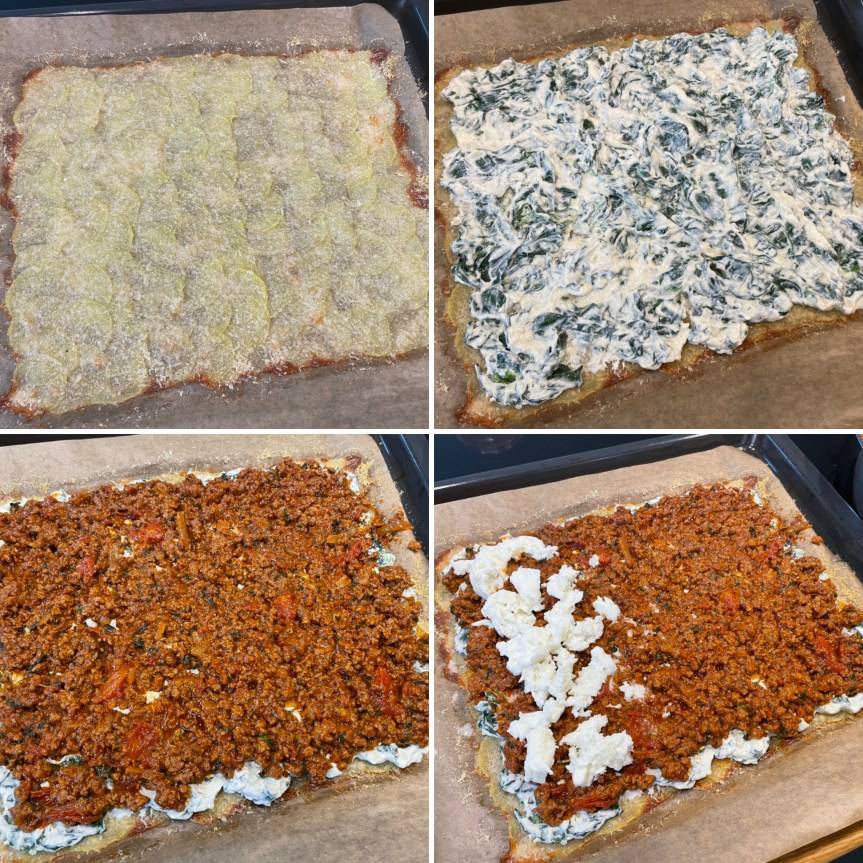 Alltägliche Zutaten, auf eine besondere Art kombiniert – und schon kommt passend zum Frühling etwas Abwechslung auf den Tisch. Die Besonderheit liegt hier natürlich ganz klar im Äußeren, nämlich in der Hülle, denn diese ist nicht aus Teig, sondern aus Kartoffelscheiben, die durch geschmolzenen Parmesan zusammengehalten werden. Hört sich lecker an? Ist es auch, v.a. wenn dann noch eine Füllung aus cremigem Ricotta, Blattspinat und saftigem Hackfleisch dazukommt.