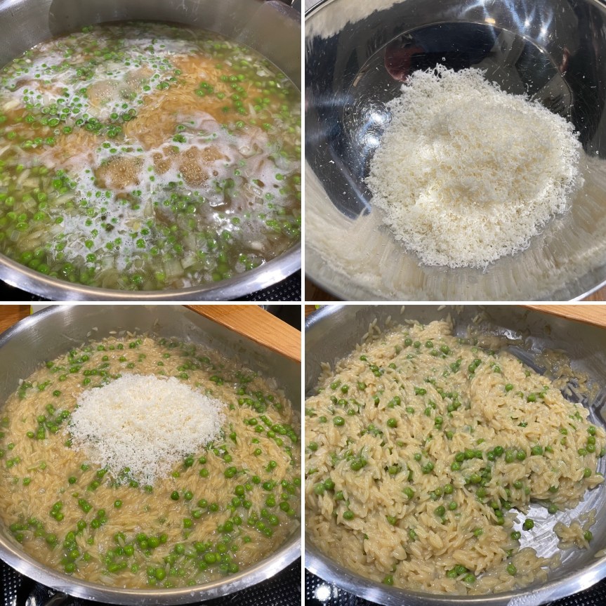 Orzo, auch Risoni oder auf griechisch Kritharaki bzw. einfach Reisnudeln genannt, sind eine wunderbare Alternative zum klassischen Risotto. Da es sich zumeist um ein klassisches One-Pot-Gericht handelt (ja, man kann nämlich natürlich den Lachs in der gleichen Pfanne braten) und auch ansonsten prima unkompliziert ist, gehört es definitiv zu den Vertretern der schnellen Küche … dabei ist es aber unglaublich lecker! Die cremige Pasta mit Zitronensäure und süßen Erbsen, kombiniert mit saftigem Lachs, das ist einfach eine traumhafte Kombination! Dabei sind den persönlichen Variationen natürlich keine Grenzen gesetzt; erlaubt ist wie immer was schmeckt. Jakobsmuscheln oder Blattspinat kann ich mir als Zutaten auch sehr gut vorstellen!