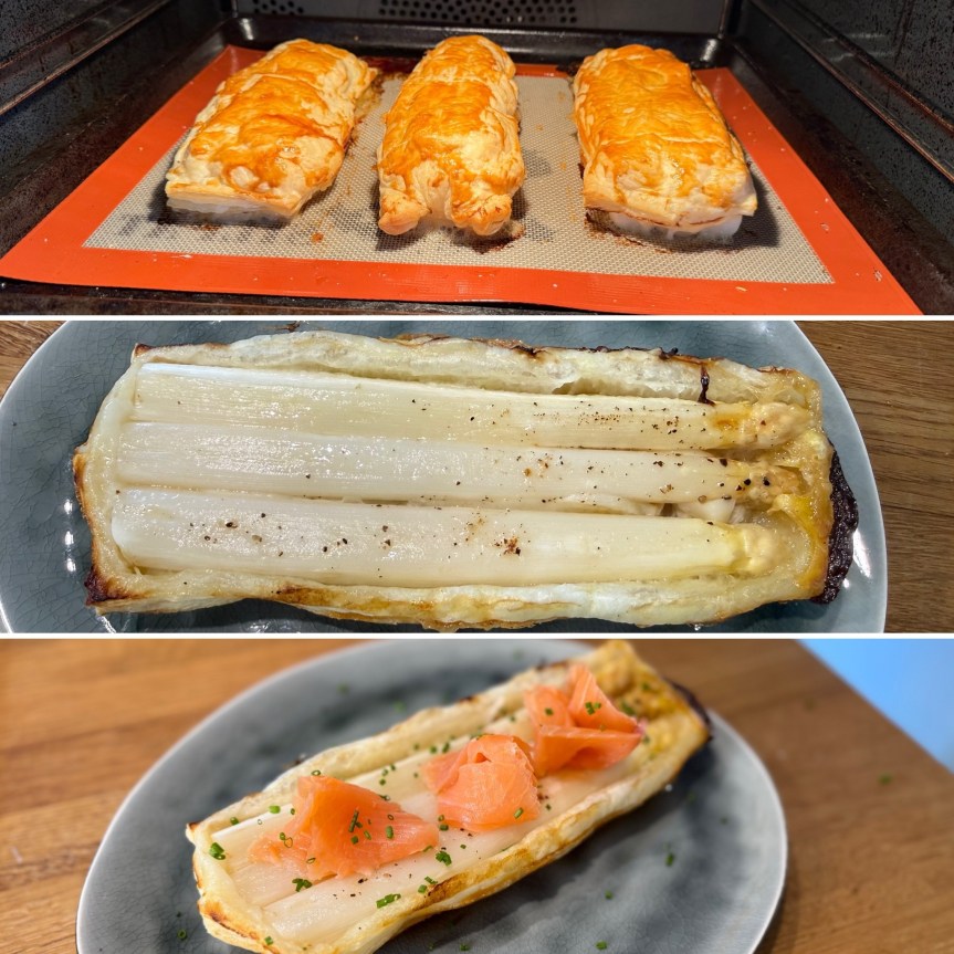 Die Spargelzeit ist endlich da, und es wurde Zeit für ein neues Rezept: es gibt Blätterteig-Schiffchen mit Spargel, Ziegenkäse und Räucherlachs! Eine spannende Kombination, die tatsächlich wahnsinnig gut schmeckt … tatsächlich aber auch sehr stättigend ist. Der Spargel wird mit dem Ziegenkäse gratiniert und bleibt, umhüllt vom knusprigem Blätterteig, schön saftig. Honig und Gewürze runden das ganze bestens ab, und der Räucherlachs bringt eine tolle, mir bisher unbekannte Abwechslung dazu. Grandios ist auch wie einfach und schnell alles zubereitet und im Backofen ist – ein absolut empfehlenswertes Spargelrezept!